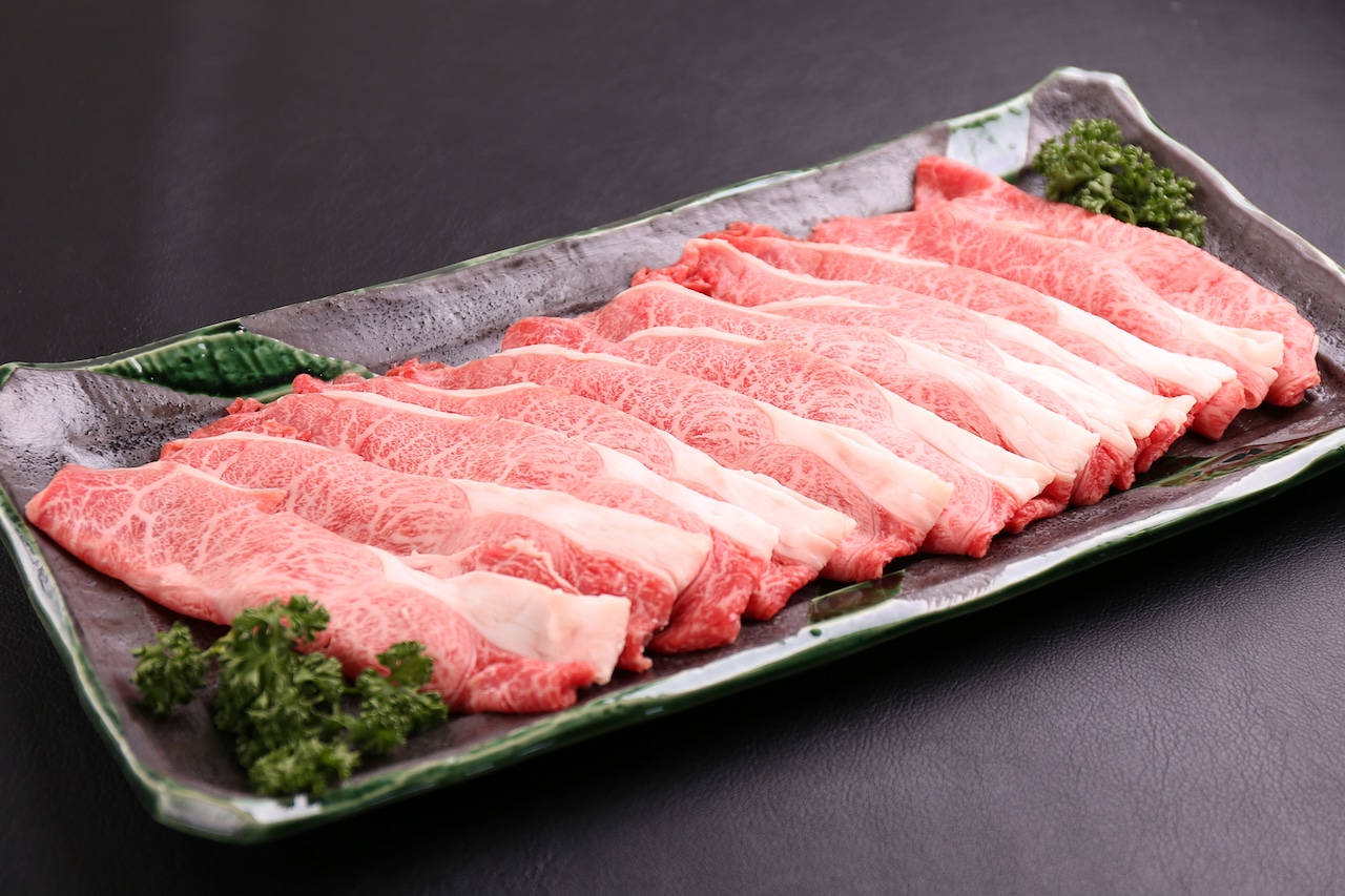 A5ランク佐賀牛をすき焼き、しゃぶしゃぶ用にカットしました。お肉と脂のうま味がお口の中に広がります。